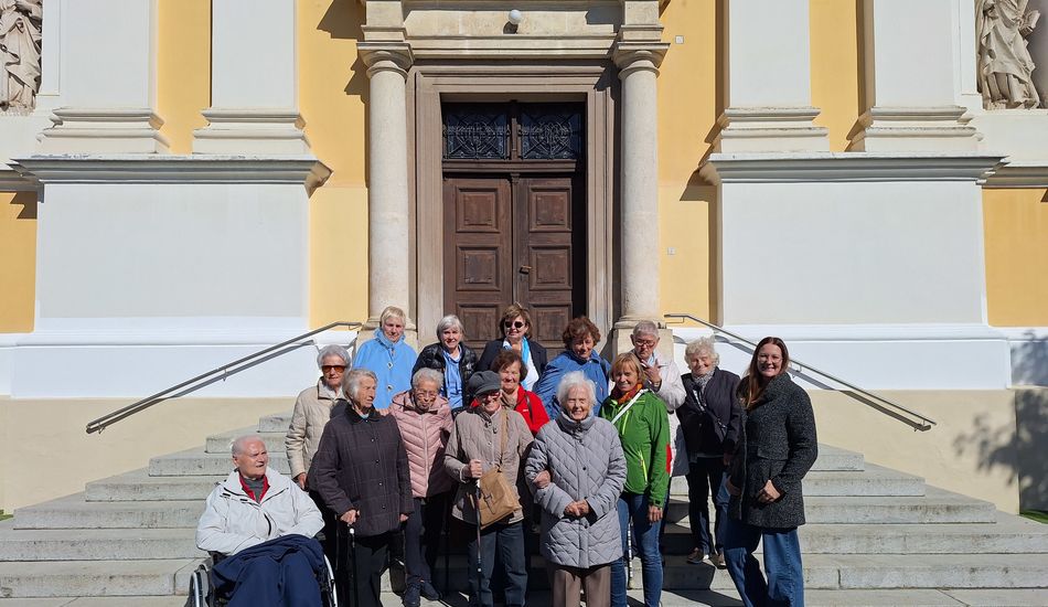 Herbstausflug der Tagesgäste des Senioren-Tageszentrums Seiersberg mit ihren Volkshelfer:innen nach Heilgenkreuz am Waasen zur Besichtigung der Kirche. Anschließende Verköstigung beim "Lipizzaner Franzl" sowie ein wohltuender gemeinsamer Spaziergang.
