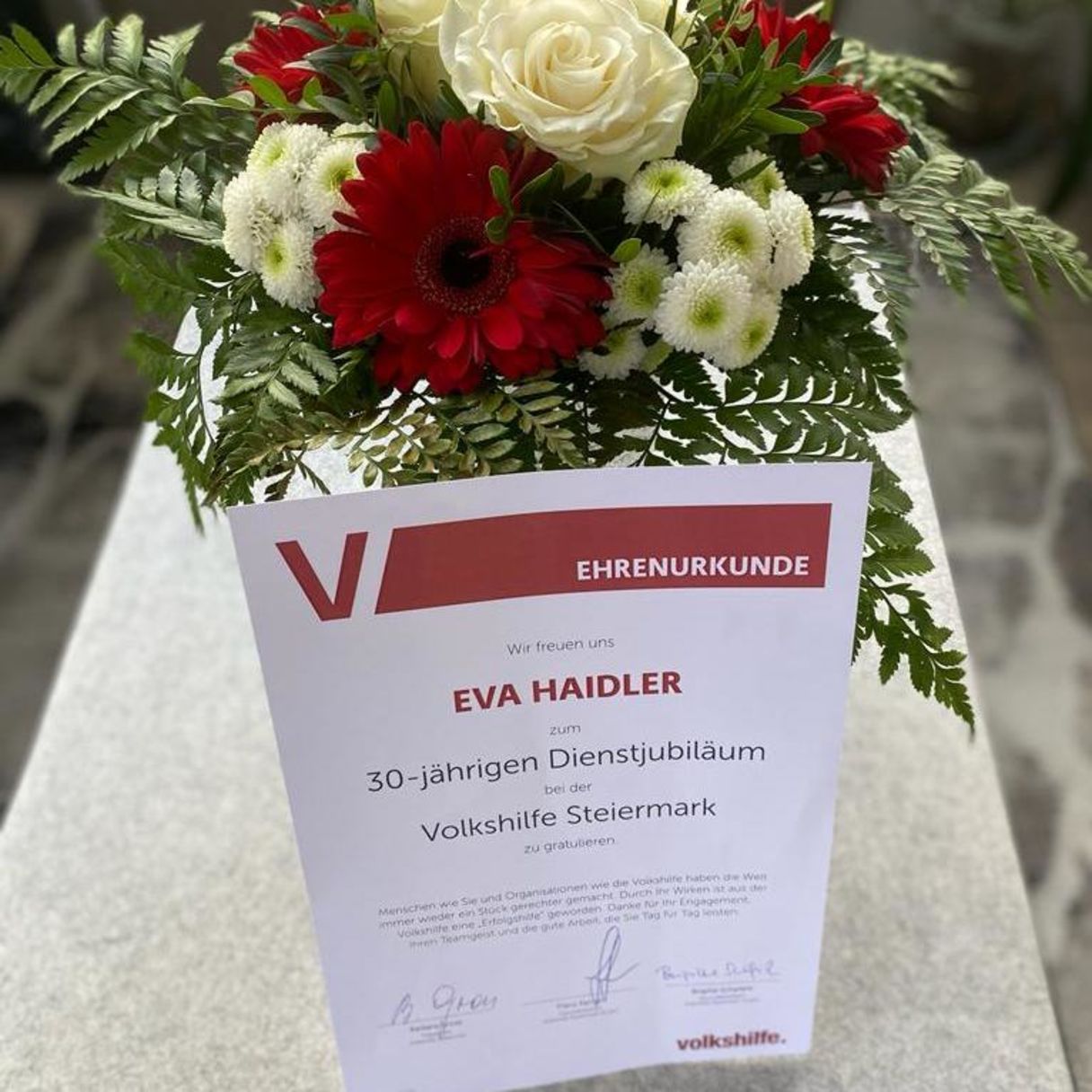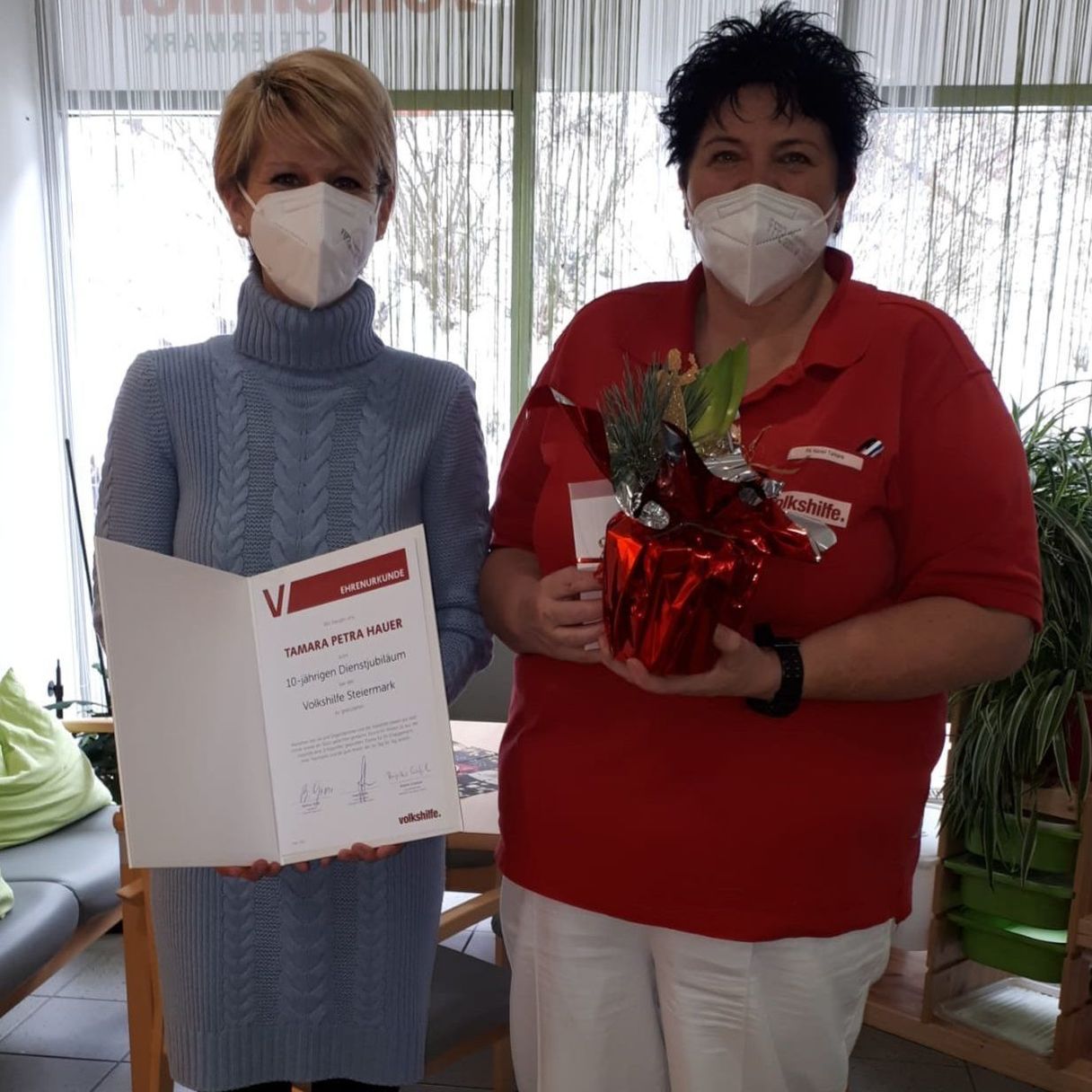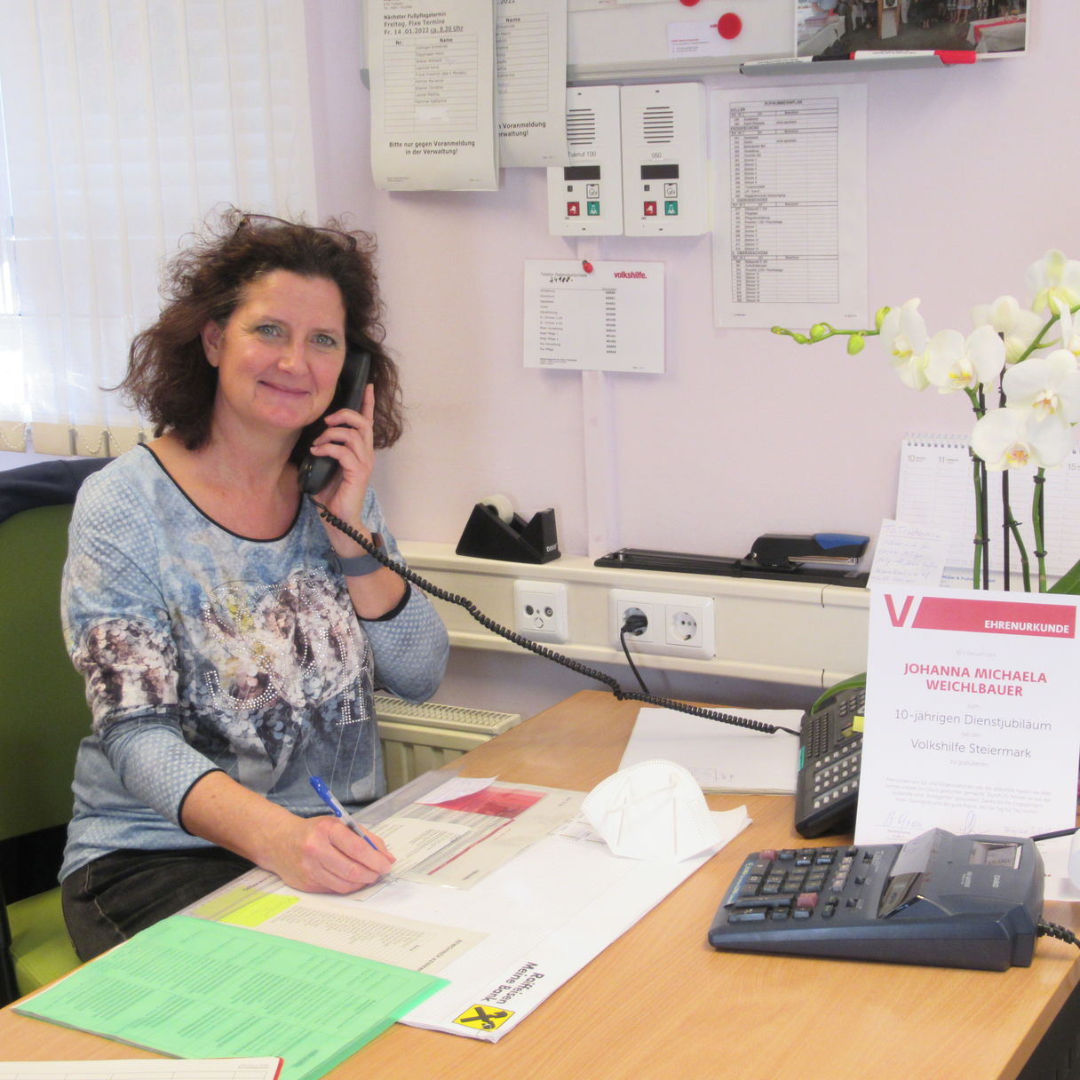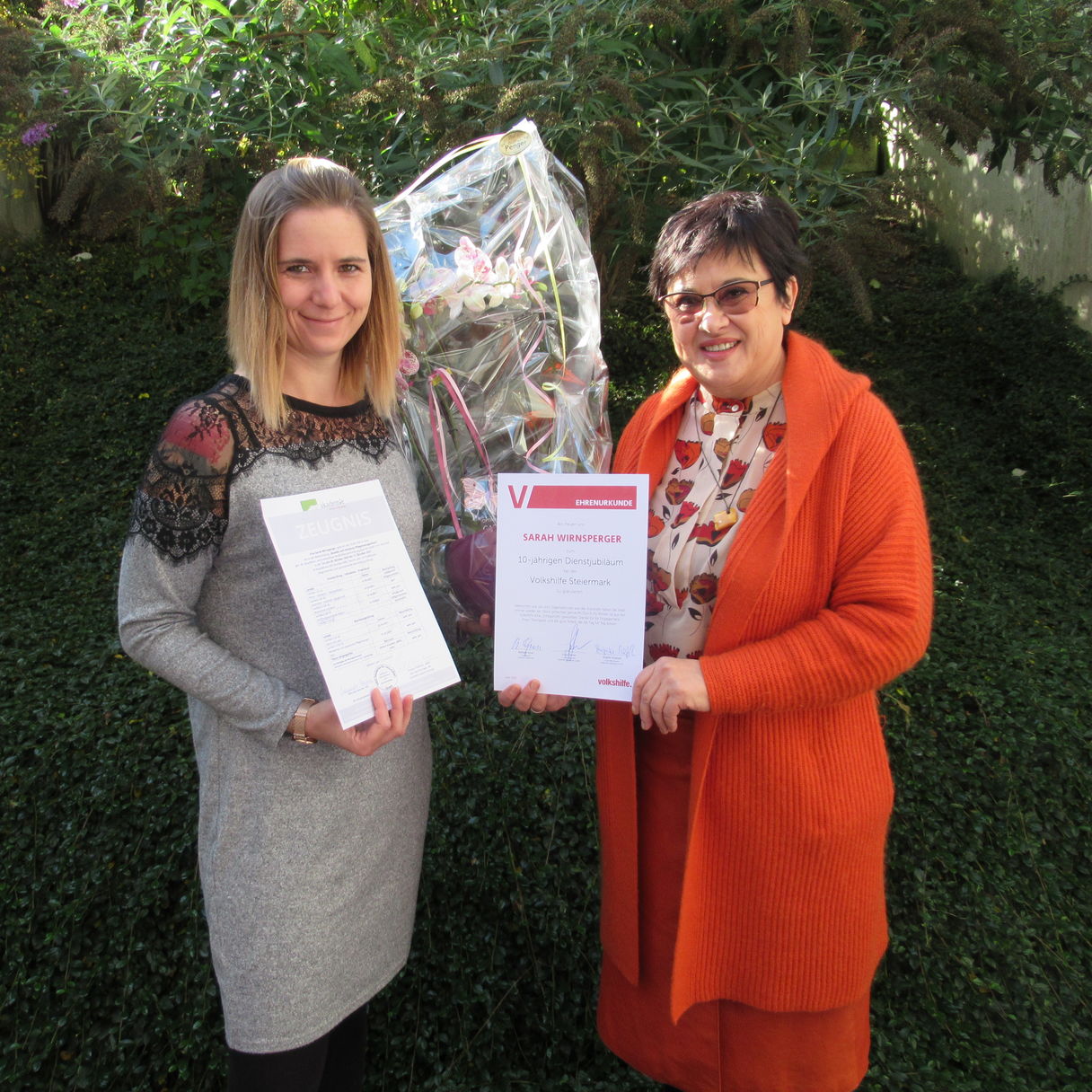 Michaela Weichlbauer ist bereits seit 10 Jahren Mitarbeiterin der Volkshilfe Steiermark, zuerst im Seniorenzentrum Niklasdorf und seit zwei Jahren "schupft" sie das Sekretariat im Seniorenzentrum St. Peter Freienstein. Hausleiterin Gabriela Gschwandl gratuliert herzlichst zum runden Jubiläum.