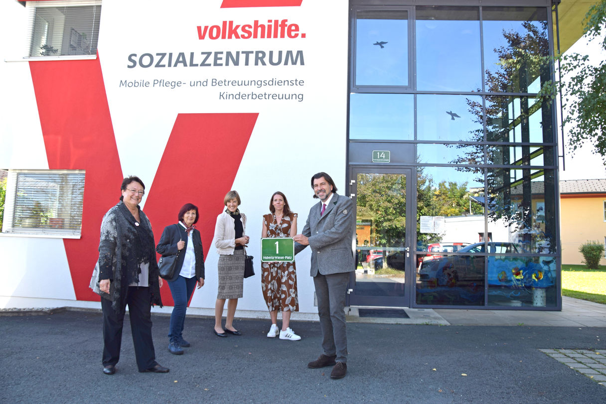Zu Ehren der 2019 verstorbenen ehemaligen Gemeinderätin und langjährigen Volkshilfe Obfrau Huberta Wieser – in Deutschlandsberg auch vielen als „Tante Berti“ bekannt – wurde der Platz vor dem Sozial- und neben dem Seniorenzentrum der Volkshilfe nach Huberta Wieser benannt.