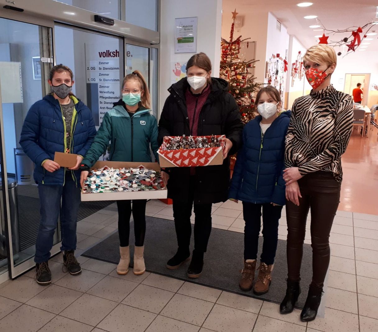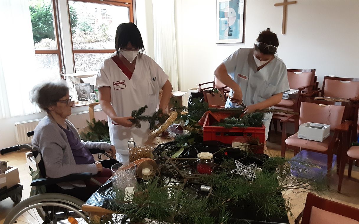 Wie jedes Jahr wird die Weihnachtszeit in der Volkshilfe ausgiebig zelebriert. Vom Adventkranzbinden zum Christbaumschmuck basteln, vom abgespeckten Weihnachtsmarkt bis zur Geschenkwerkstatt und auch das traditionelle „Frisch und Gsund-Wünschen“ darf dabei selbstverständlich nicht fehlen.