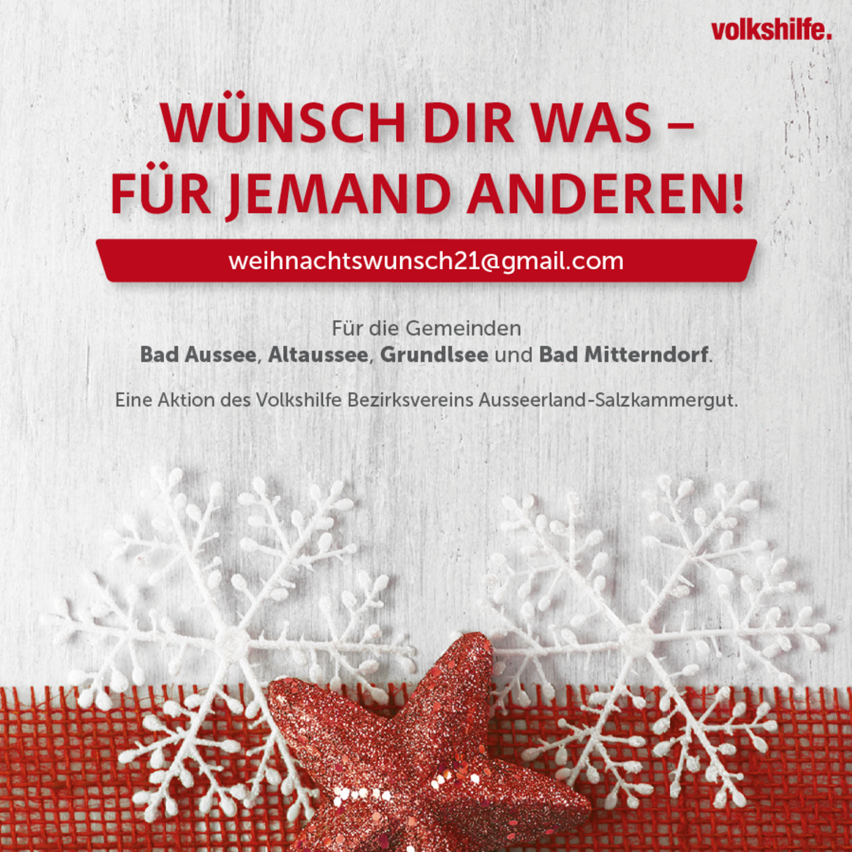 Der Bezirksverein Ausseerland-Salzkammergut organisierte coronabedingt einen Online Weihnachtswunschbaum. Armutsbetroffene Menschen durften dem „Christkind“ ihren Weihnachtswunsch schreiben. Diese Wünsche wurden dann von den ChristkindhelferInnen des Bezirksvereins erfüllt.