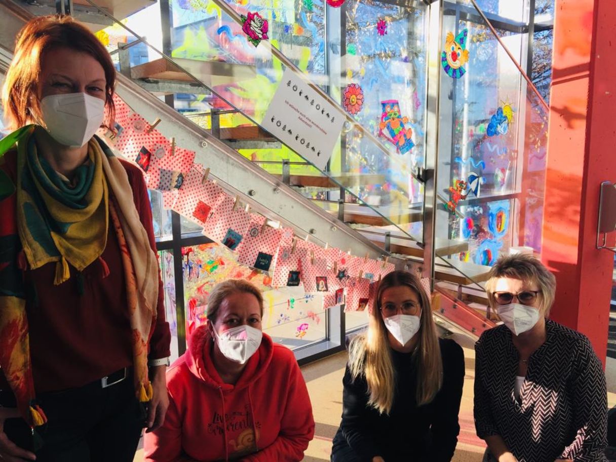 Schon das zweite Jahr in Folge überraschte Alexandra Sackl die KollegInnen im Sozialzentrum Voitsberg mit einem selber gebastelten Adventkalender. Auch wenn das Lächeln der KollegInnen auf dem Foto, aufgrund der Masken, nicht zu sehen ist, freuten sich die KollegInnen im Sozialzentrum (vl. Renate Kügerl, Sabine Neumayer, Alexandra Sackl, Sabine Genseberger) sehr über die täglichen Leckereien und hoffen insgeheim, dass eine langjährige Tradition geboren wurde.