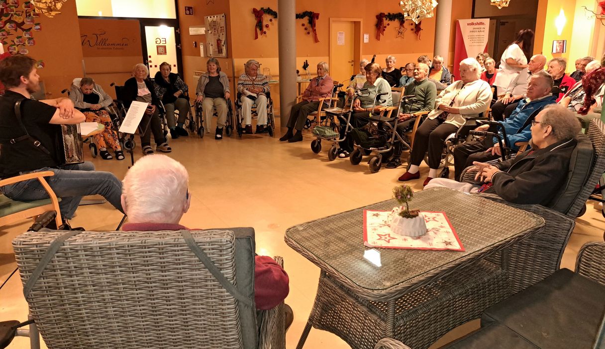 Mit Musik, Liedern und Geschichten gestaltete Georg Fleck-Obendrauf den Adventbeginn mit und für die Bewohner:innen des Seniorenzentrums Frohnleiten. Es wurde gemeinsam gesungen sowie Adventgeschichten und -gedichten gelauscht. Genussvoll verköstigten die Feiergäste so manches Häferl Tee oder Glühwein, begleitet von einer Auswahl feiner Kekse und traditionellem Kletzenbrot. „Weihnachten früher und heute“ war auch heuer wieder viel diskutiertes Thema beim gemeinsamen Erinnern.