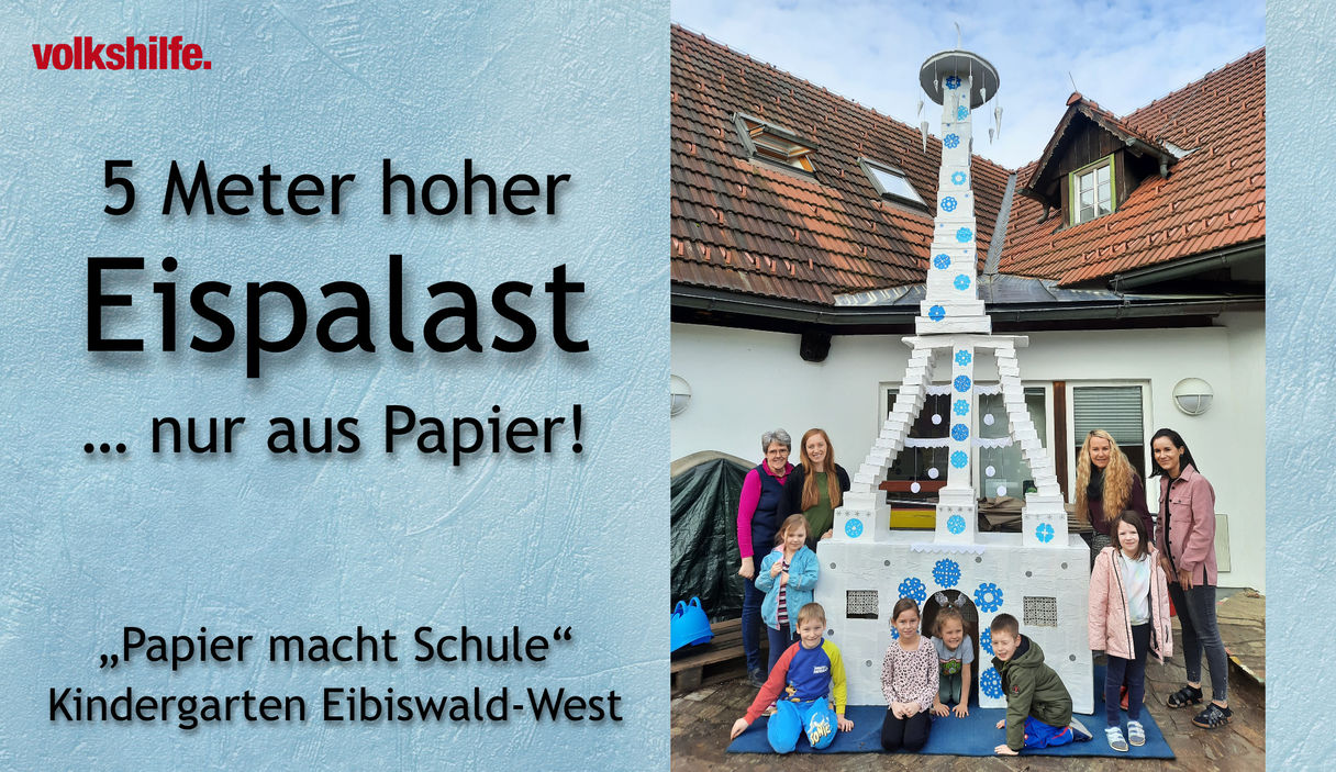 Der Kindergarten Eibiswald-West hat sich auch heuer wieder an einem Wettbewerb der Initiative „Papier macht Schule“ beteiligt. Das Thema diesmal: „Türme aus Papier und Karton“. Die Kids setzten die Vorgabe eindrucksvoll um und erschufen einen Eispalast mit einer Gesamthöhe von knapp fünf Metern!