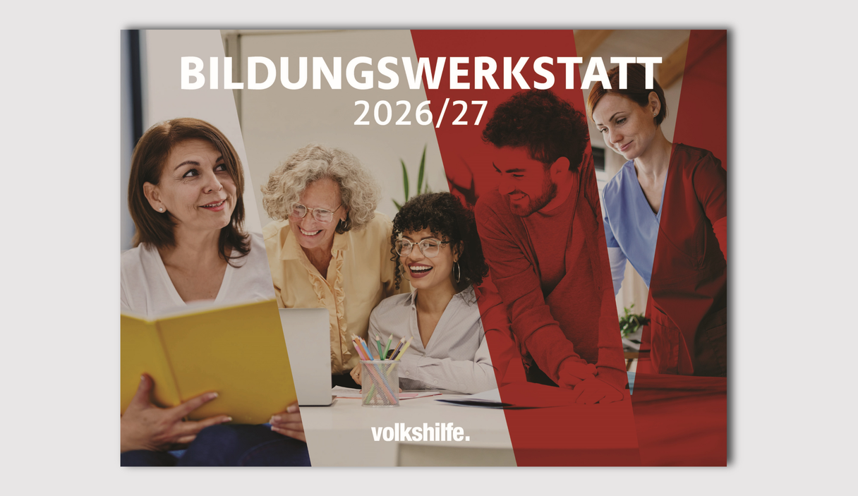 Die Bildungswerkstatt 2026/27 ist ab sofort in digitaler und analoger Form verfügbar. Zusätzliche Exemplare können bequem über den Volkshilfeshop bestellt werden. Allen Volkshelfer:innen viel Freude beim Entdecken und Weiterbilden!